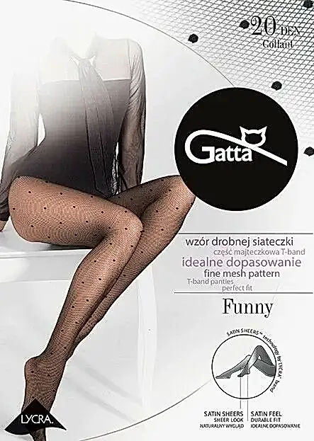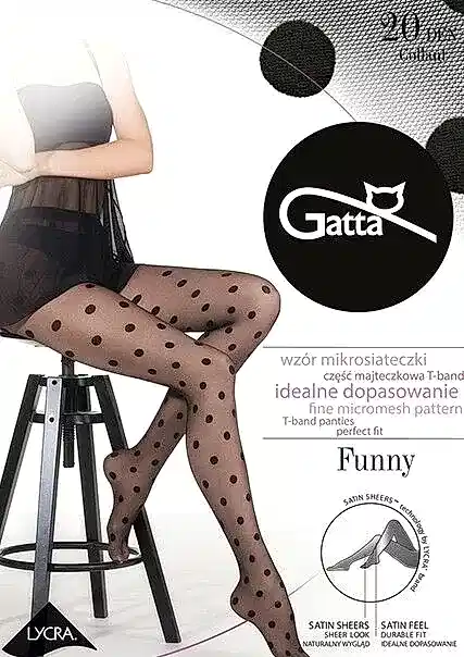 КОЛГОТКИ GATTA GT FUNNY 05 Тонкие фантазийные колготки в мелкую сетку, с лайкрой, плотностью 20 ден, с Пин Ап комфортным поясом, ластовицей и плоским швом, по всей ноге узор "горох". Размер: 2 и 3. Цвет: Пин Ап