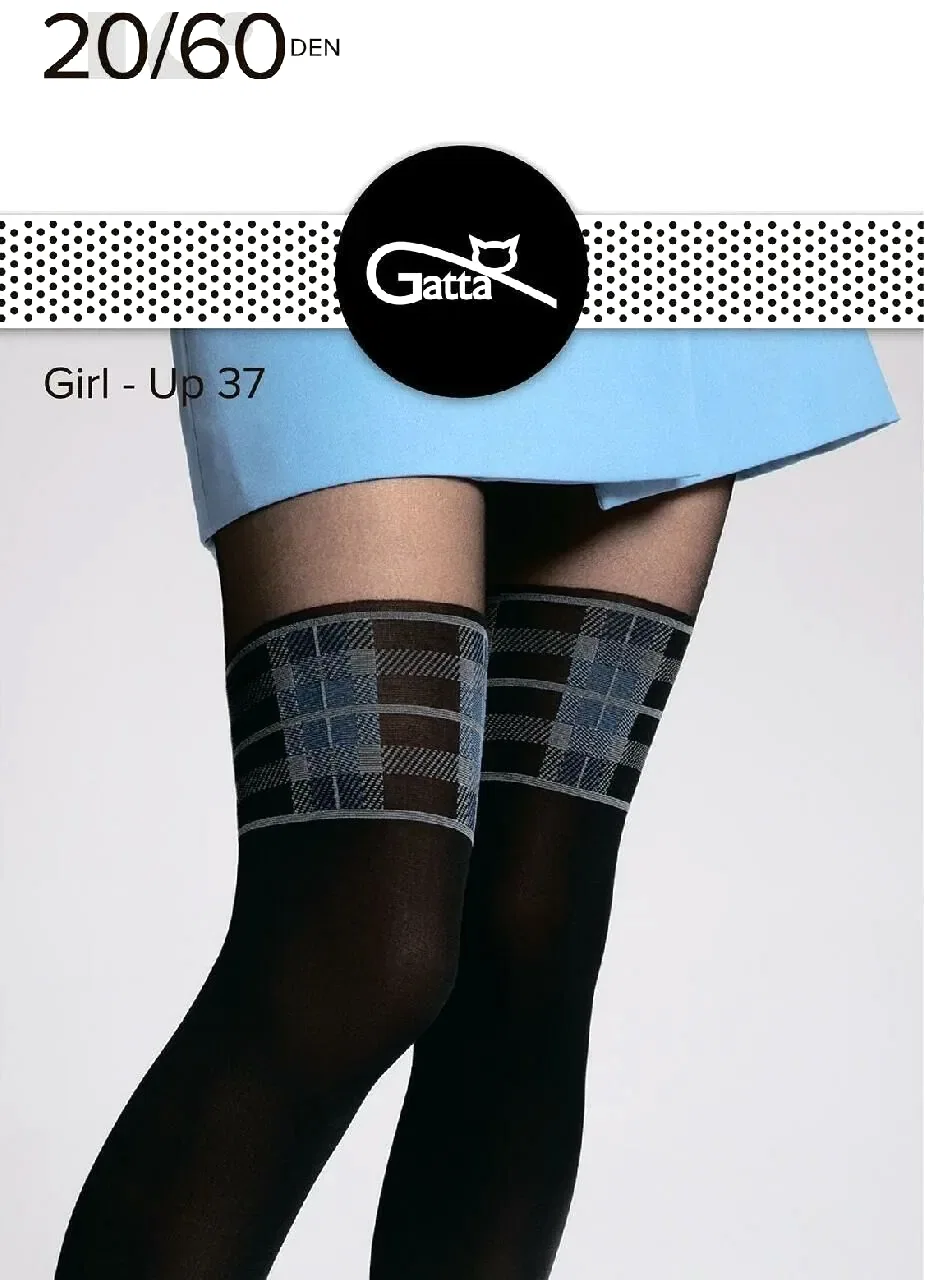 Пин Ап GATTA GT GIRL UP 37 Фантазийные колготки представляют собой модель из двух частей, имитирующую чулки с синей резинкой в клетку. Размеры: 2 и 3. Цвет: nero-blue. Плотность: 60. Состав: полиамид 87%, полипропилен 5%, эластан 8%.