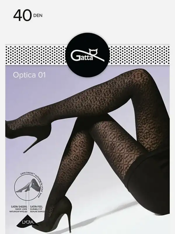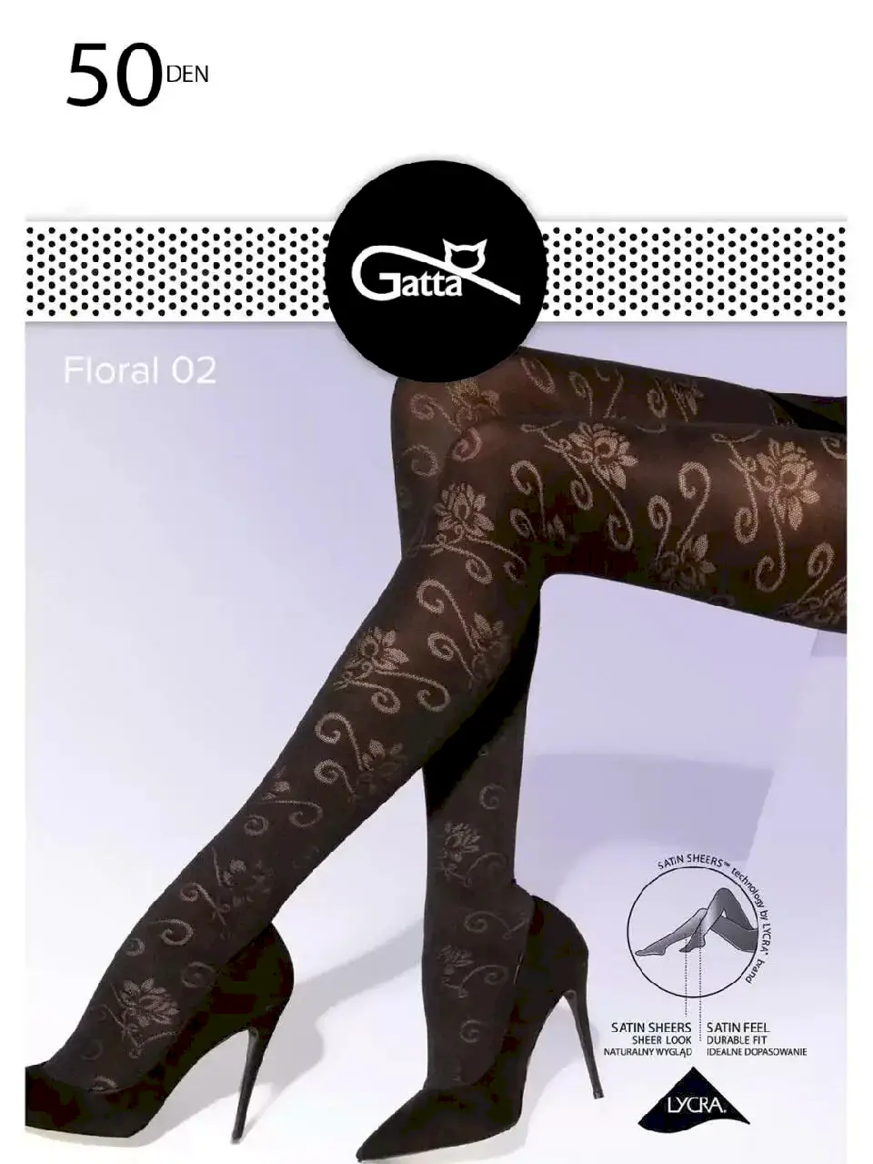 КОЛГОТКИ GATTA GT FLORAL 01 Непрозрачные фантазийные колготки из мягкой микрофибры с лайкрой, плотностью 50 ден, с широким поясом, ластовицей, усиленным плоским швом и Пин Ап орнаментом. Размеры: 2, 3 и 4. Пин Ап nero.