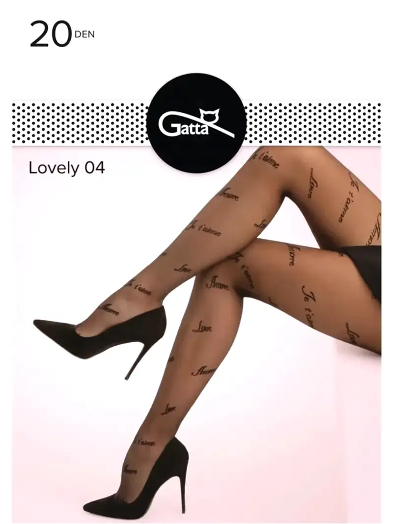 КОЛГОТКИ GATTA GT LOVELY 04 Тонкие фантазийные колготки с лайкрой, плотностью 20 ден, с широким комфортным поясом, гигиеничной Пин Ап и усиленными плоскими швами и надписями на тему любви. Размеры: 2, 3 и 4. Цвет: Пин Ап