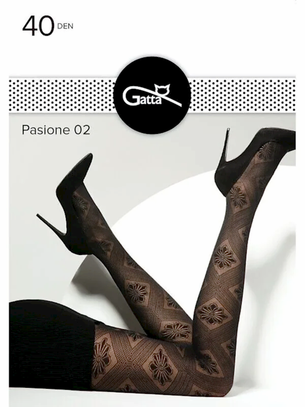 КОЛГОТКИ GATTA GT PASIONE 02 Фантазийные колготки без шортиков плотностью 40 ден с крупными Пин Ап Размеры: 2 и 3. Цвет: nero. Плотность: 40. Состав: полиамид 93%, эластан 7%.
